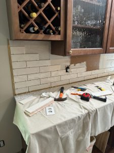 For this project, we selected high-quality ceramic subway tiles renowned for their long-lasting durability and classic visual appeal. The tiles, featuring a glossy white finish, reflect light beautifully, making the kitchen appear brighter and more welcoming. Each tile measures 3×6 inches, perfect for creating a balanced visual alignment against the kitchen’s dimensions. The choice of ceramic material ensures that the backsplash remains easy to clean and resistant to stains and scratches, qualities every homeowner appreciates.